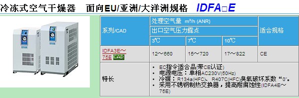 SMC冷冻式空气干燥器(面向EU亚洲大洋洲规格)IDFA8E-23-A的产品简介