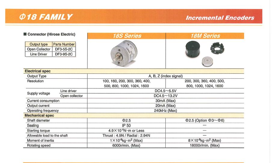 - 产品类别: 旋转编码器 - 内密控NEMICON编码器 - 18M系列